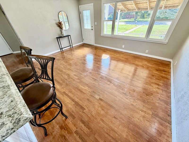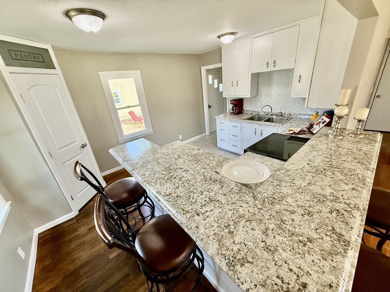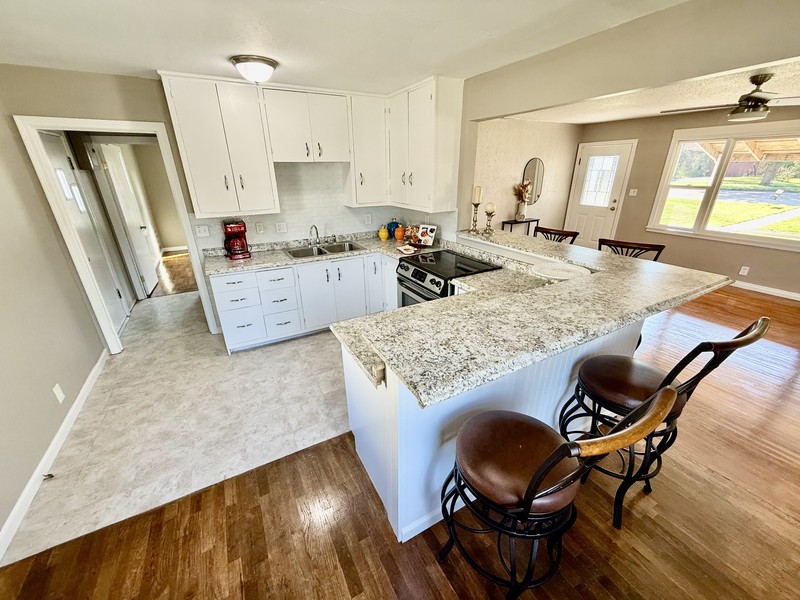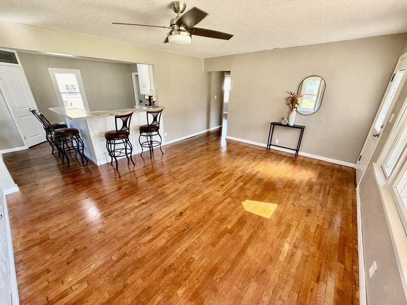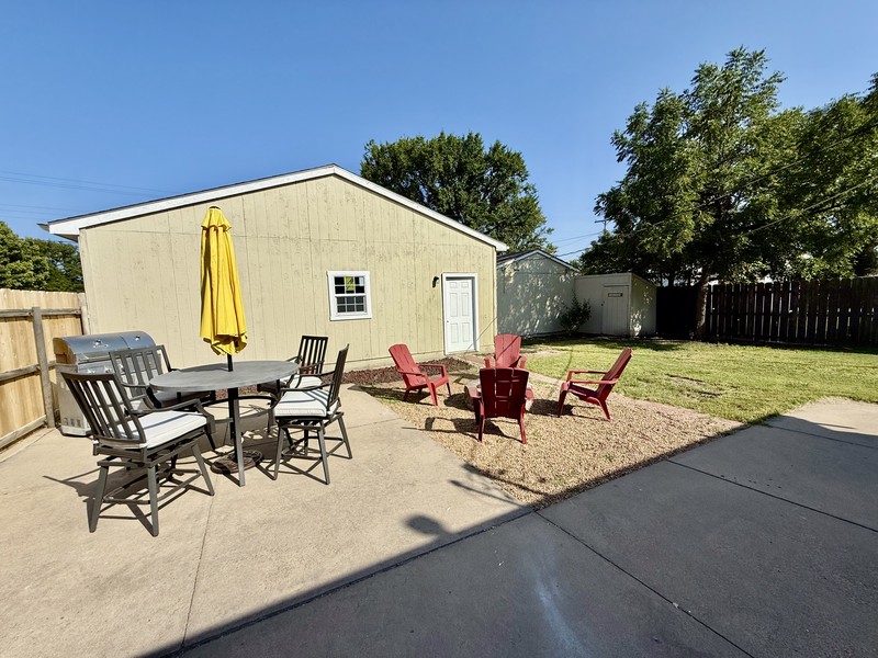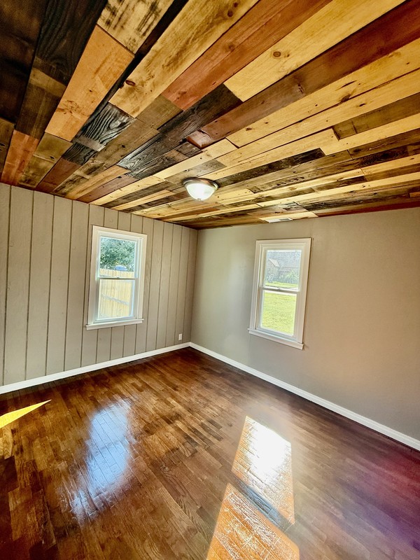 A 30 X 28 finished walls\ceiling, double overhead doors, walk in door w\access to amazing patio!! A fabulous man\woman cave, with bar area, shop, workout area, probably 4 Volkswagen Beetles LOL!! PLUS mini-split heat and air!! Then, a She-Shed\Office plus Garden shed, all within a new privacy fenced in back yard. The front covered porch features a great area to enjoy the Fall days and evenings!! Move in ready, 2 bedroom, 1 bath with beautiful hardwood floors, fun accented wooden custom ceiling. Open floor plan, inviting living room into the breakfast\cocktail bar Kitchen with a festive corner pantry. Laundry off the kitchen and easily accessible to the backyard entrance. Hurry and call Kendra Trueblood, About You Realty for your private tour, you wont want to miss all of this great OUTDOOR and INDOOR space!!!!